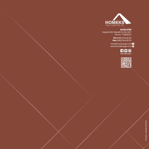 SATIŞ OFİSİ Kaşüstü Mh. Muratlı Cd. No. 52/1 Yomra / TRABZON Tel: 0462 344 32 32 Fax: 0462 344 32 33 info@homeksyapi.com www.homeksyapi.com homeksyapi HCR Ajans +90 462 300 30 03